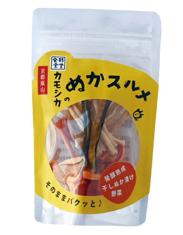 ぬかスルメとは、ぬか漬けした野菜を、乾燥させギュッと旨味を閉じ込めたスティック状のスナックです。