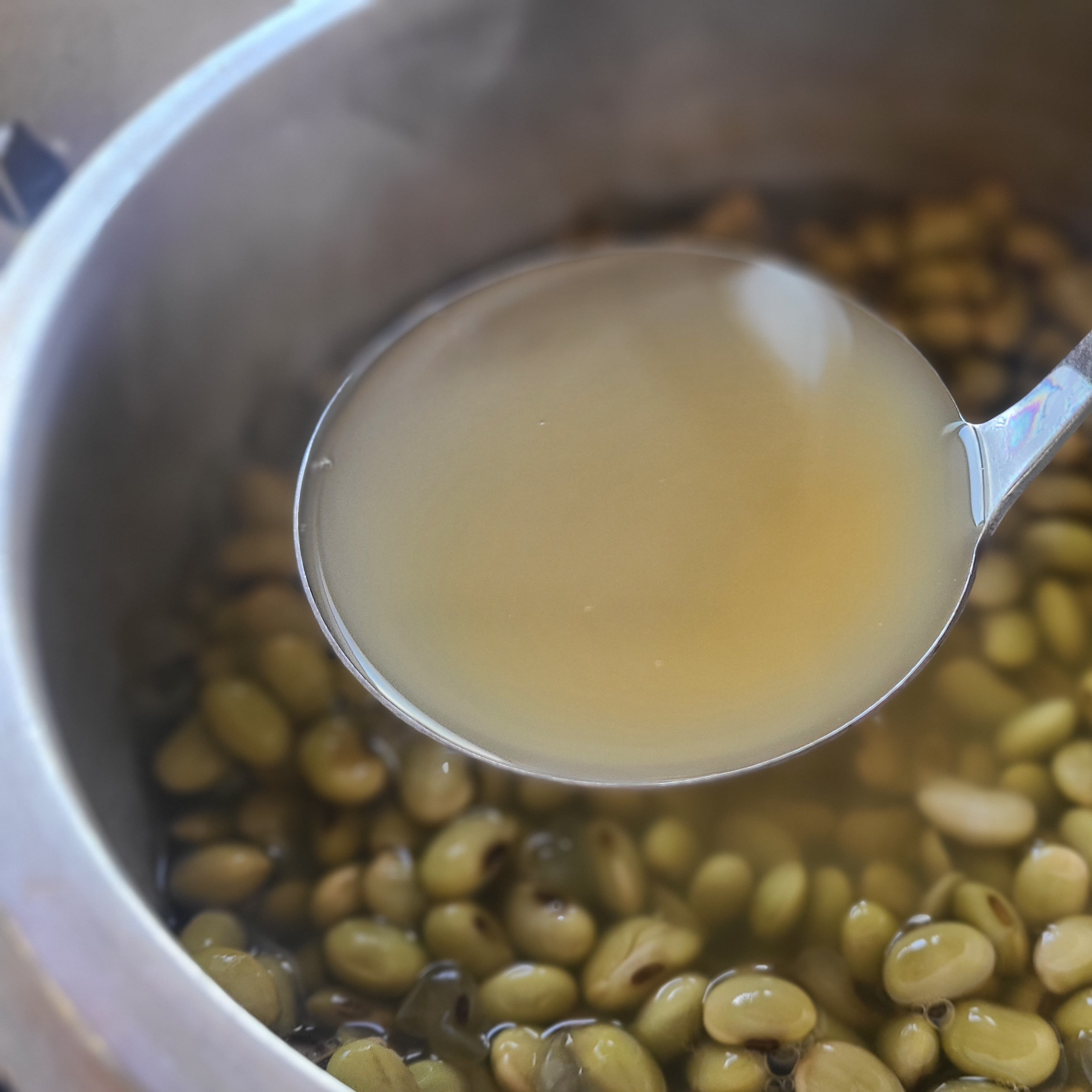 ①滋賀県産の「青大豆」を使用。黄大豆よりも粒が大きく、甘味が強い仕上がりに。生産量も限られている貴重な青大豆を、美味しいお味噌のために贅沢に使用。