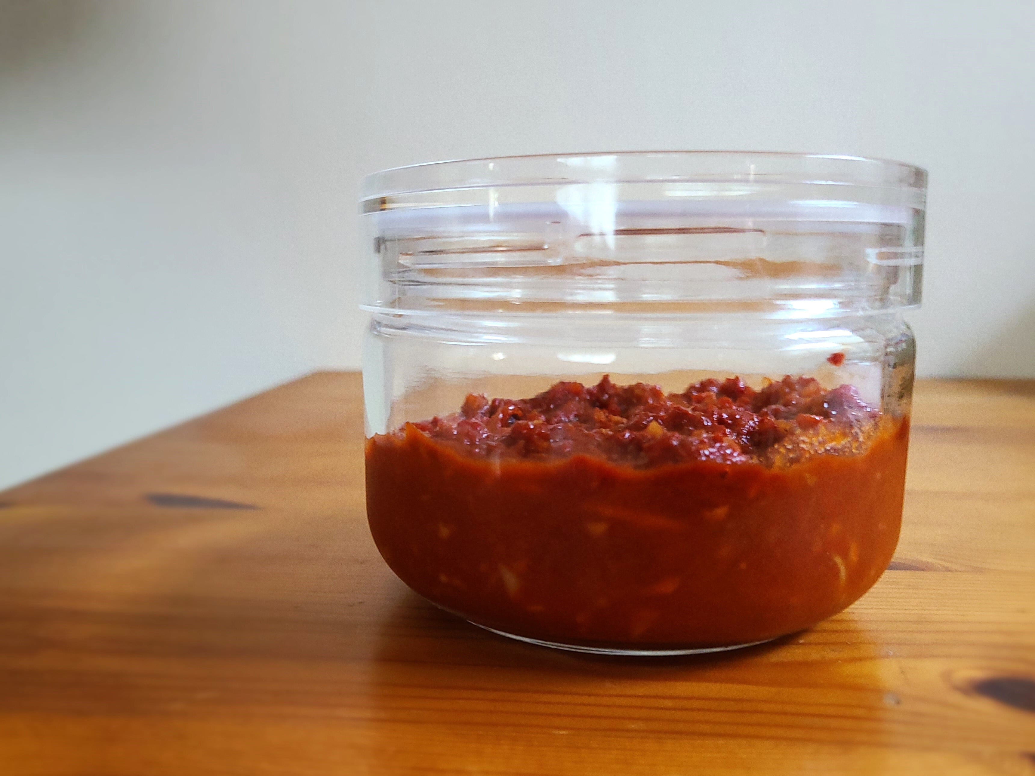 口が広い浅型で、「混ぜやすく」「取り出しやすく」「洗いやすく」の3拍子揃った保存瓶。