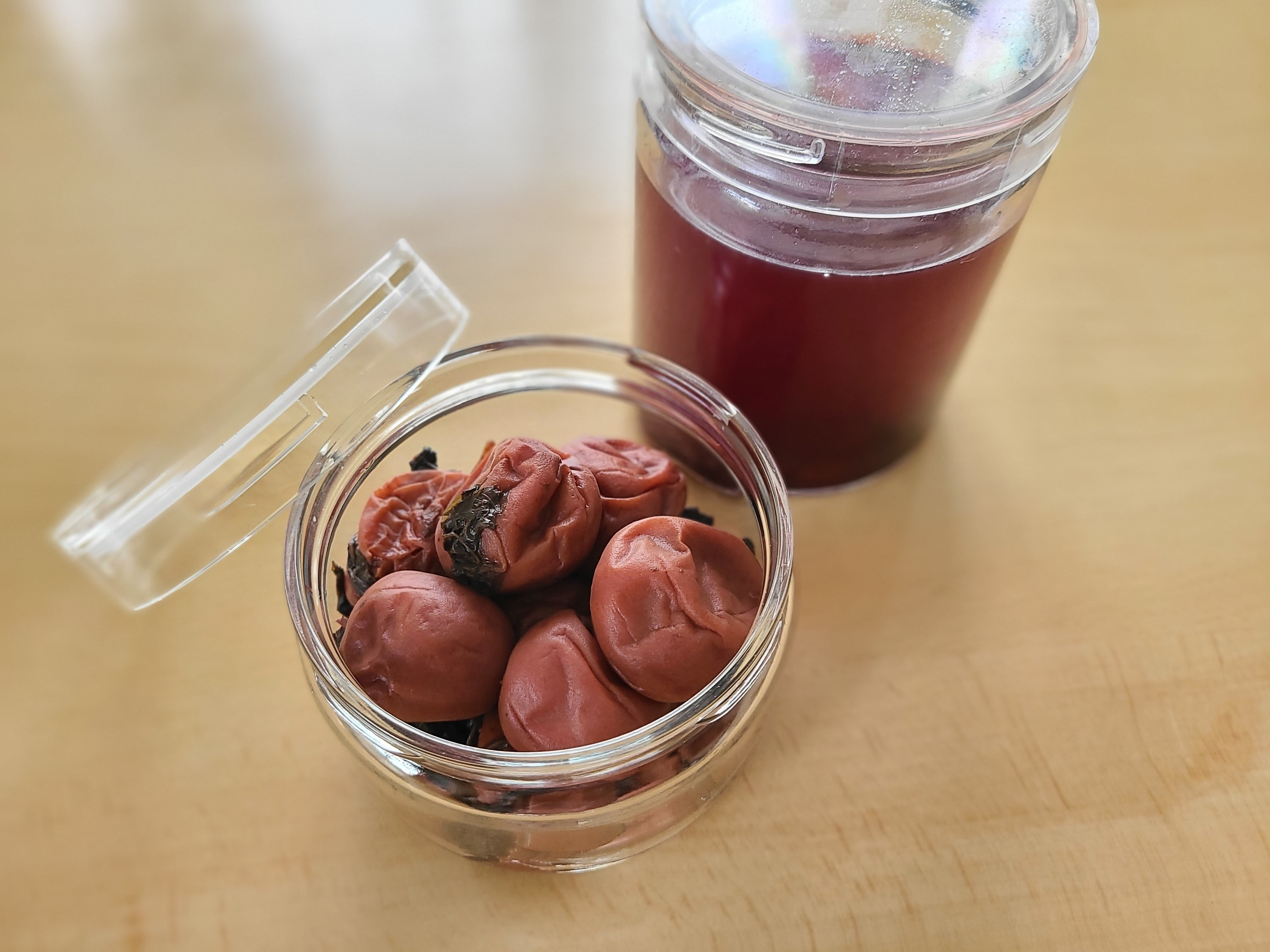 ※写真3枚目:梅干しが入っているのは、取り出しやすい浅型600ml。梅酢は深めの800mlに。使い勝手や分量に合わせてお選び頂けます。